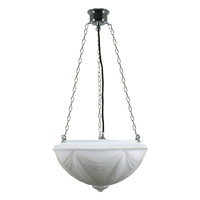 The 1 light standard 3 chain suspended pendant light is constructed from solid brass components with a quality chrome finish which is complemented beautifully with the timeless Empire glass shade.