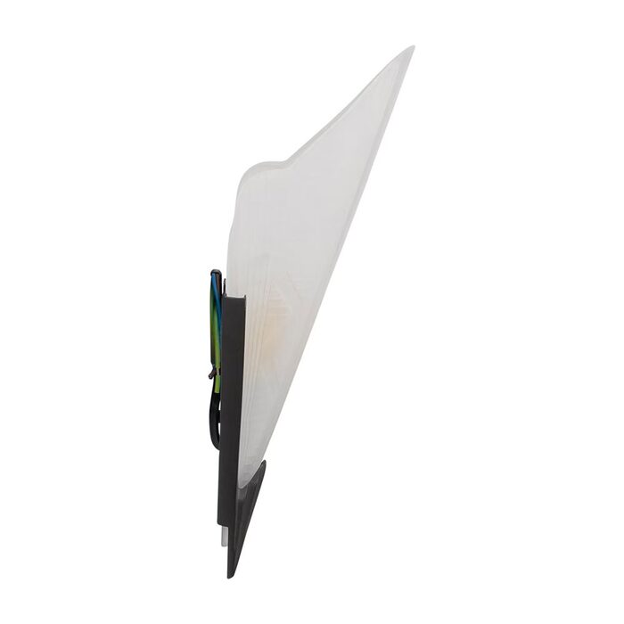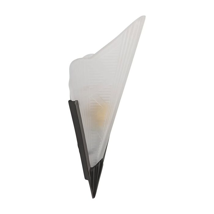 The frosted glass shade is designed to sit flush against the wall, softly diffusing light both upward and outward to create a warm, ambient glow.