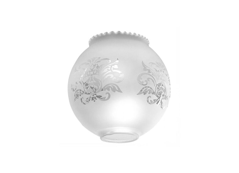 Spanish Replacement Glass. Model Q041- frosted replacement glass. This spherical-shaped glass has a beautiful floral design etched into its side and a rippled lip. The opening of the glass is 50mm and is made for use with a spring clip.