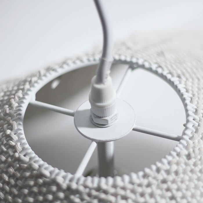 The pendants base and suspension cords colours are matched to the colour of the shade.