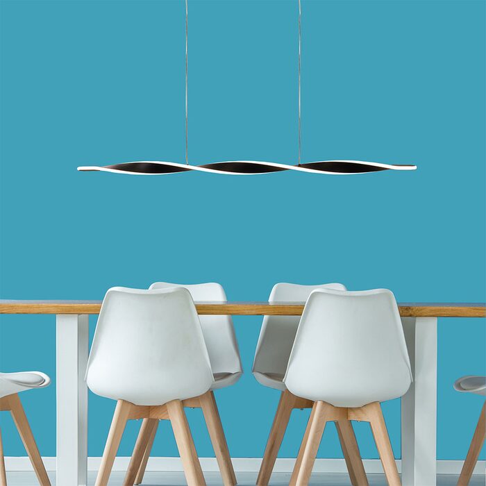 The AEON is a contemporary LED pendant, featuring a spiral twisted aluminium body with opal edging.