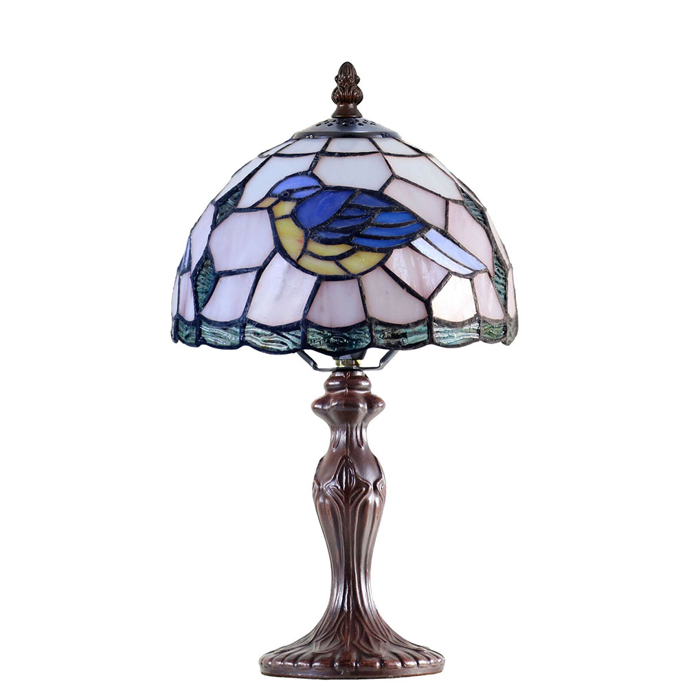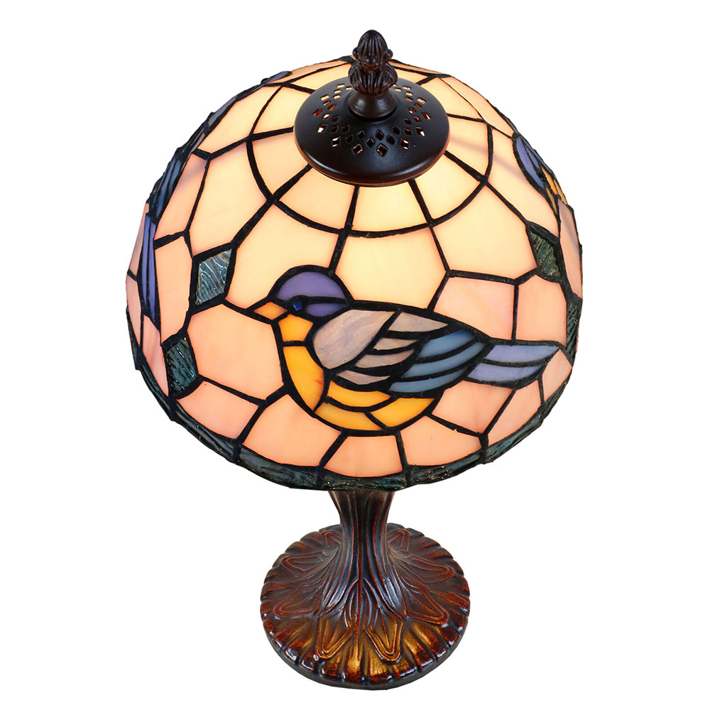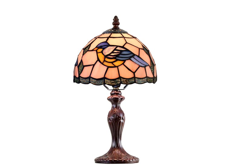 The Aerie table lamp is a colourful Tiffany style lamp that combines many pieces of art glass to create a stunning and complex design.