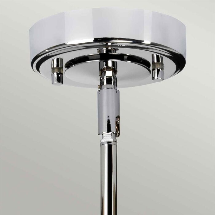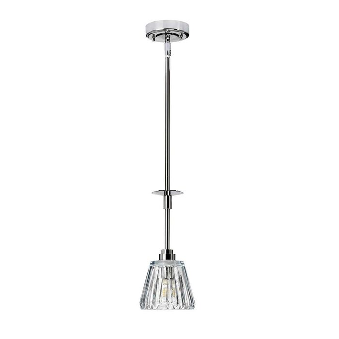 An integral LED lights up the acrylic rod on the wall light and 3-light pendant. Light sparkles through clear cut glass shades on all models.