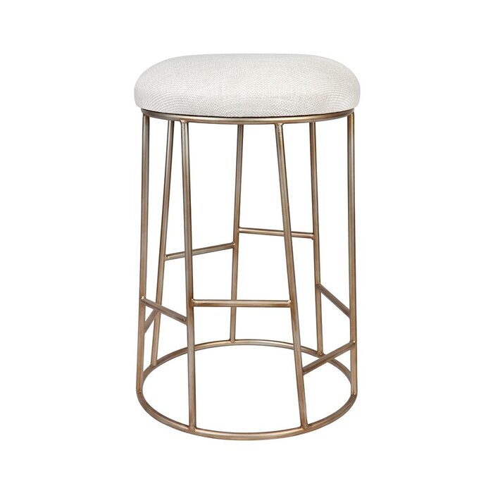Creating contemporary drama with its geometric antique gold steel base, the Aiden kitchen stool is designed to offer comfort and quality with its neatly tailored natural linen mix cushion and varying height tubular steel footrests.