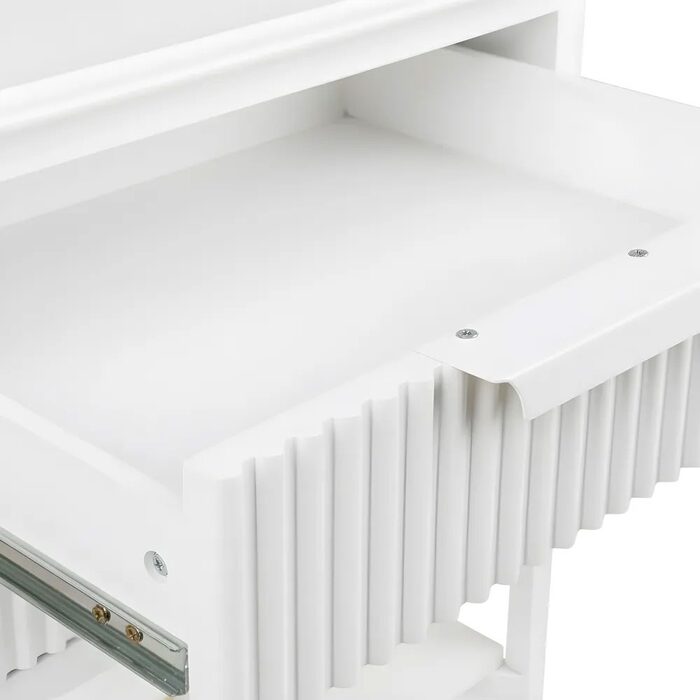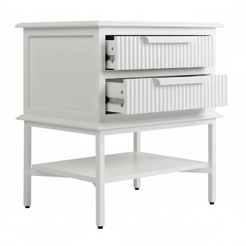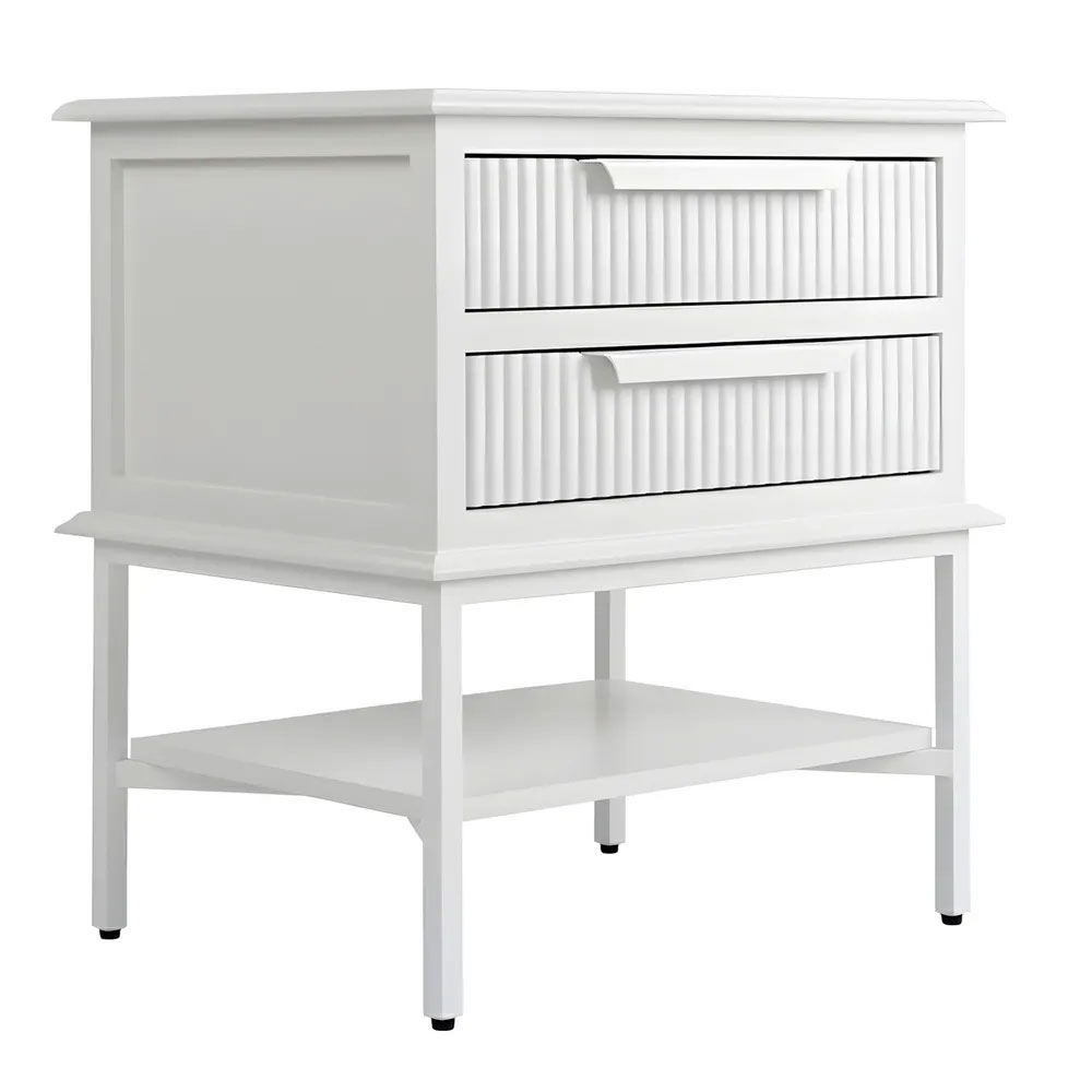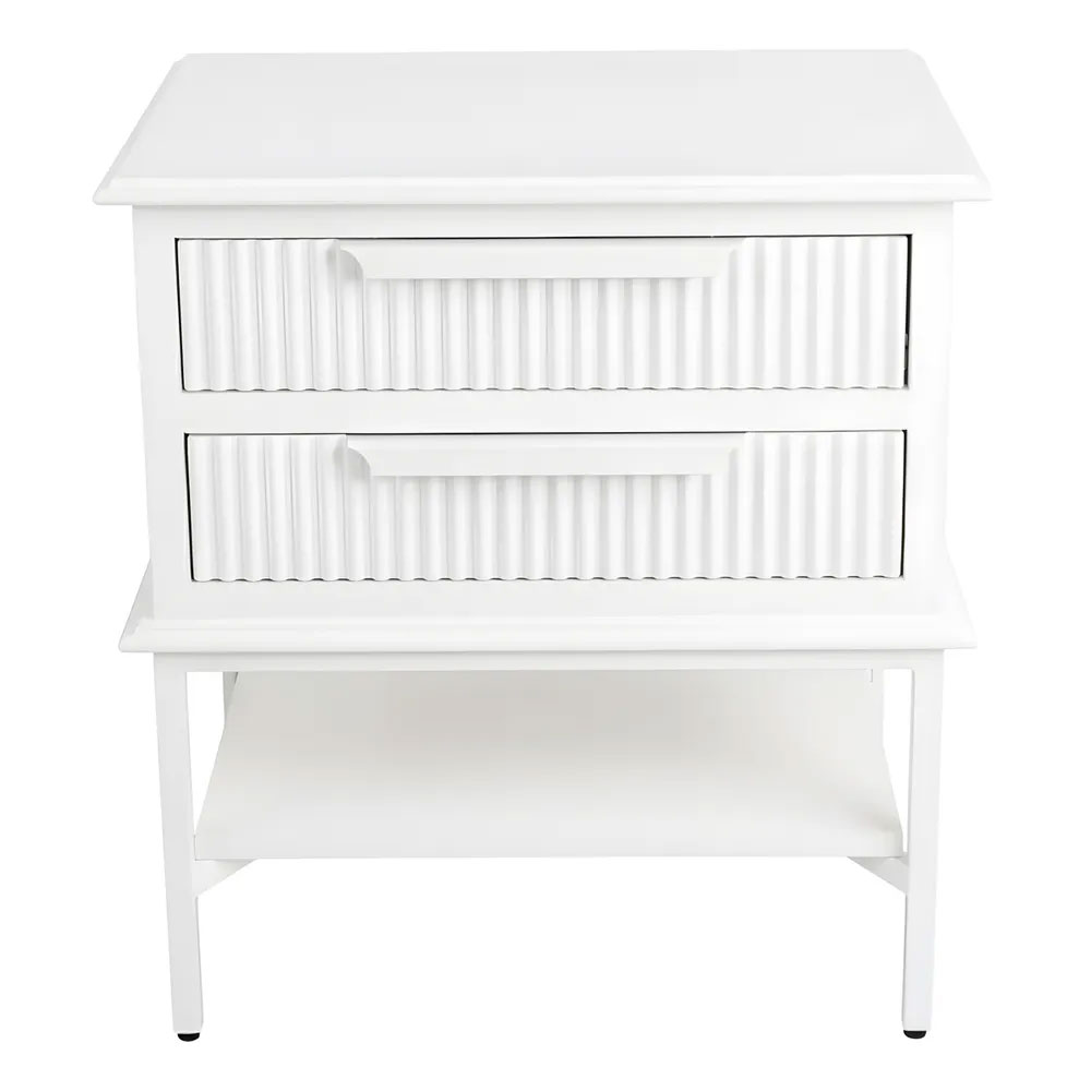 Compact in size yet full of character, the Aimee Bedside Table - Small brings refined detail and sculptural appeal to modern bedroom spaces.