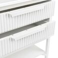 Featuring ribbed drawer fronts, bold rectangular handles, and an open shelf base, it offers a balance of practical storage and statement design.