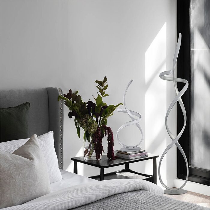 Coming in gold or satin chrome, the Ainhoa Floor Lamp loops and turns on itself to create a sublime lighting fixture.