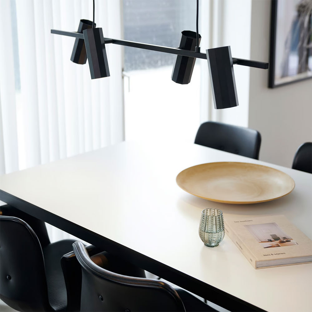 The minimalistic pendant is perfect above the dining or kitchen table.