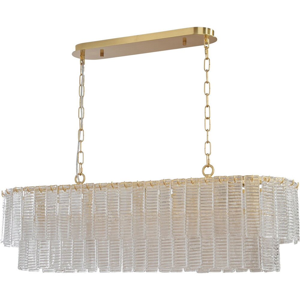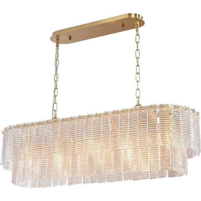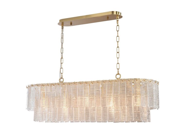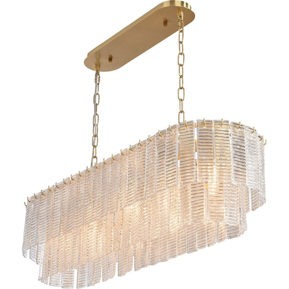 Showcasing layered tiers of textured glass panels, each piece casts a radiant display of light, adding depth and visual interest to your space.