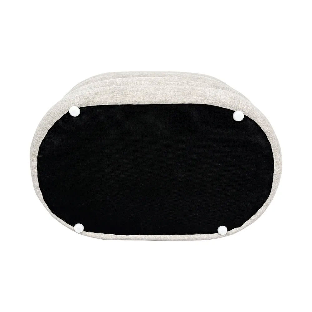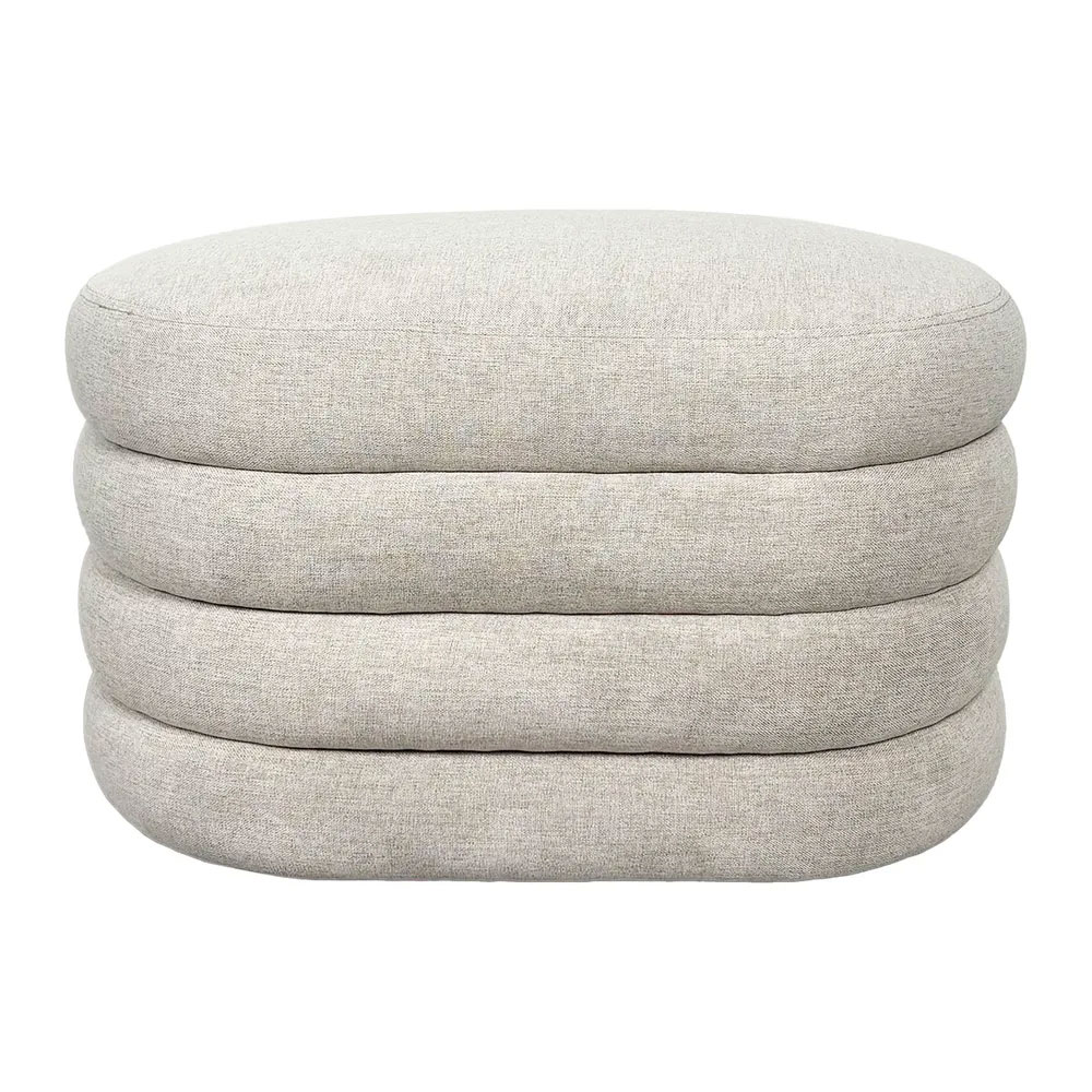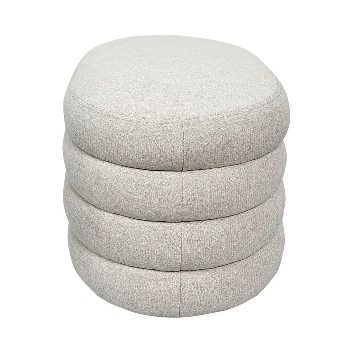 Featuring a layered design with plush fabric upholstery, it offers style and versatility as a footrest, extra seat, or decorative accent.