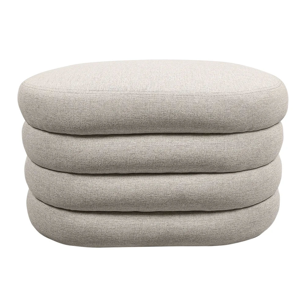 Add modern elegance to your home with this stacked cushion ottoman, available in navy, olive, and natural hues.