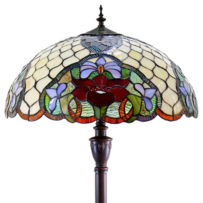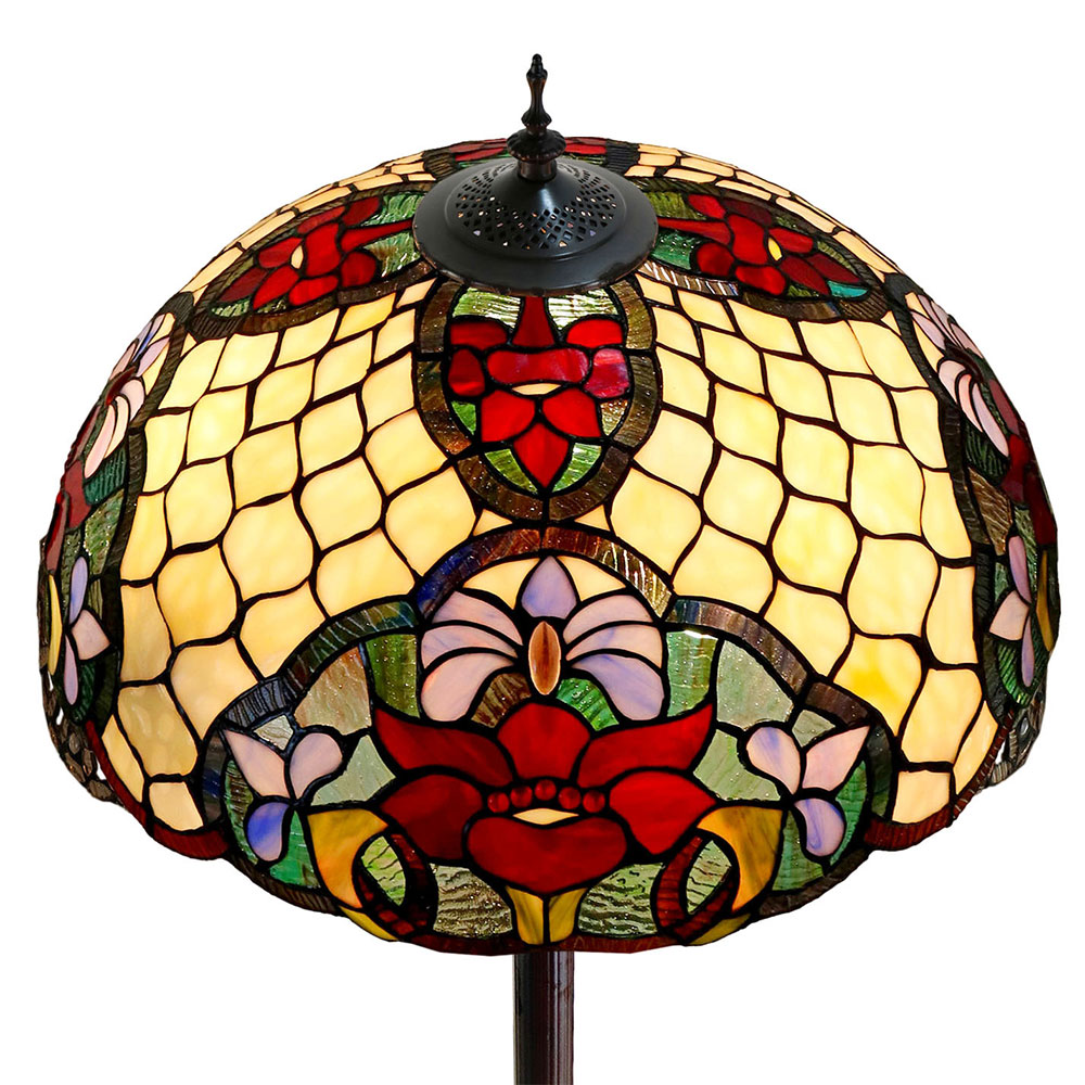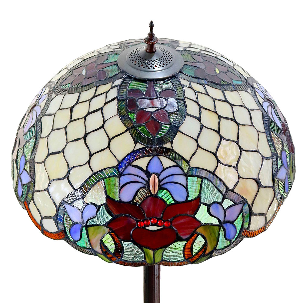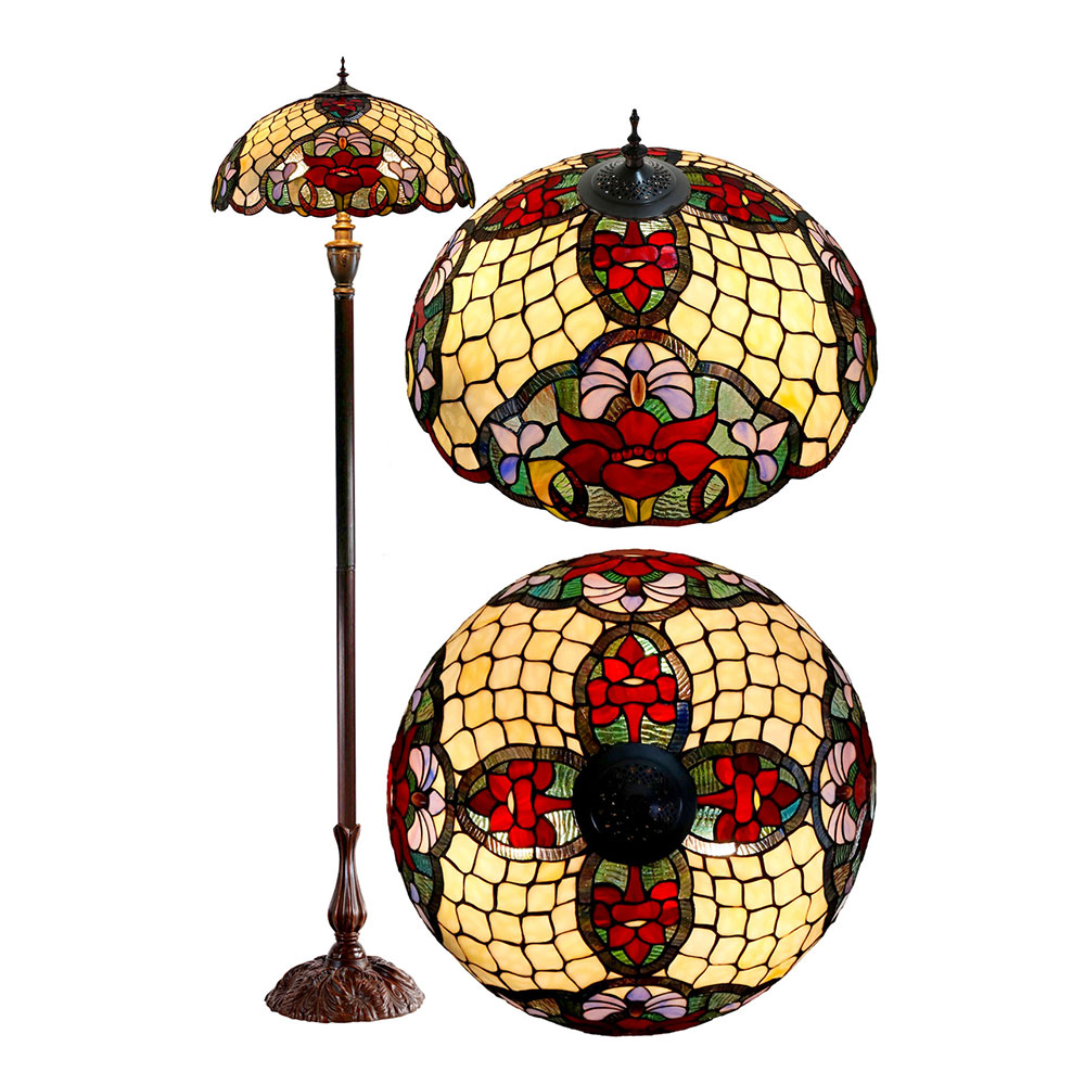 This beautiful floor lamp features a handcrafted, genuine alicia design on stained art glass shade combined with beautiful base and frame made of resin.