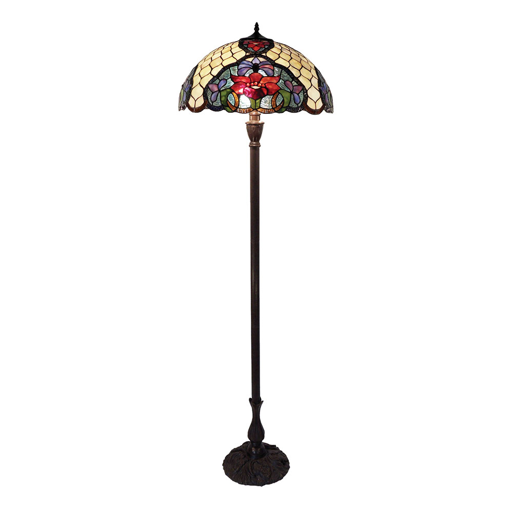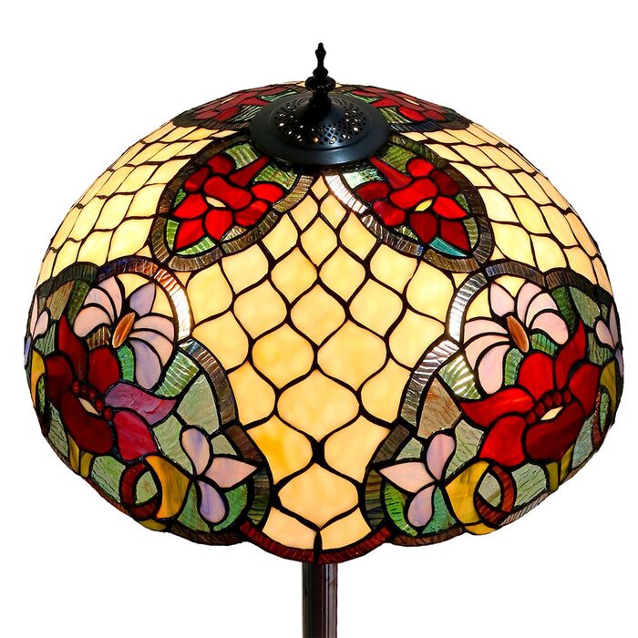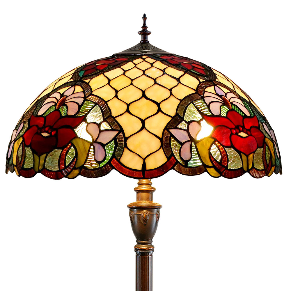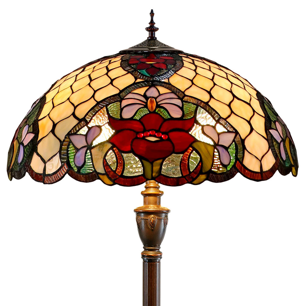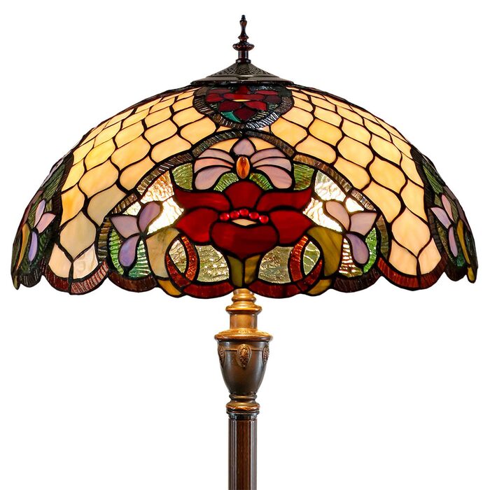 This beautiful floor lamp features a handcrafted, genuine alicia design on stained art glass shade combined with beautiful base and frame made of resin.