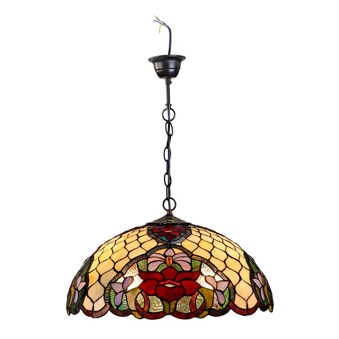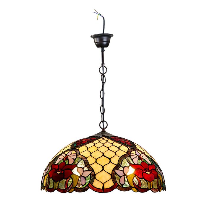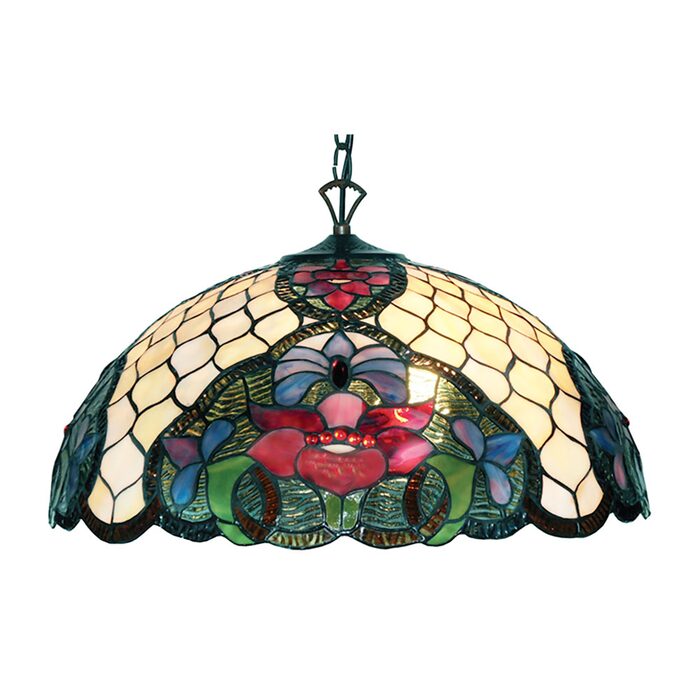 The Alicia pendant is a colourful Tiffany style lamp that combines many pieces of art glass to create a stunning and complex design.