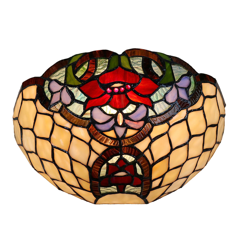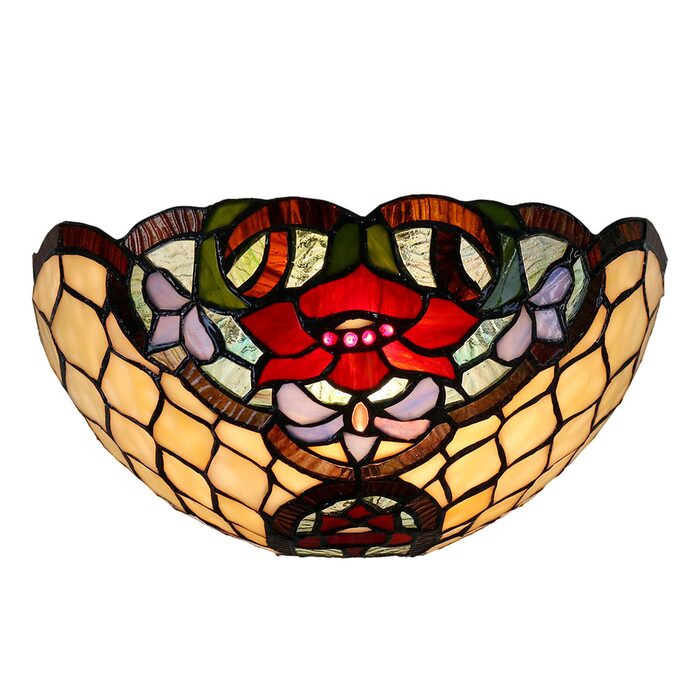 This beautiful wall lamp features a handcrafted, genuine alicia design on stained art glass shade which will brighten up and inspire your space with natural elements.