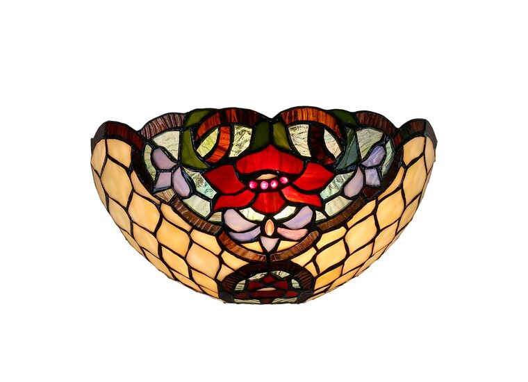 The Alicia wall lamp is a colourful Tiffany style lamp that combines many pieces of art glass to create a stunning and complex design.