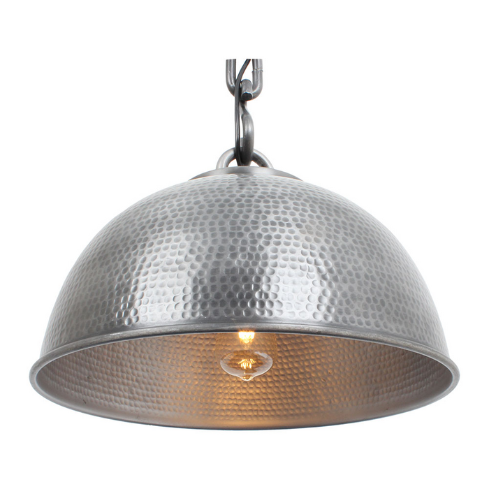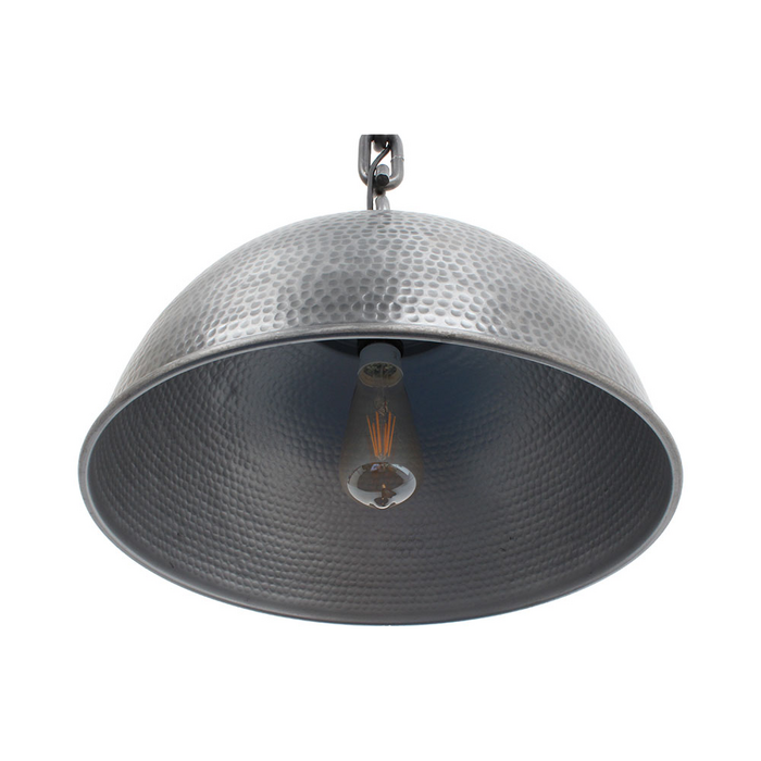 The "Alloy" 1 light chain suspension pendant is constructed from quality all aluminium components and the shade has a golf ball dimpled finish creating a wonderful texture look combined with its unique chunky 10mm thick chain links and it all being finished externally with a gun metal grey colour and the internal side of the shade is finished in Silvery Grey allowing you to see the bumps from the dimples and creating a quality even light distribution all this combines to let you to create a truly amazing industrial look.
