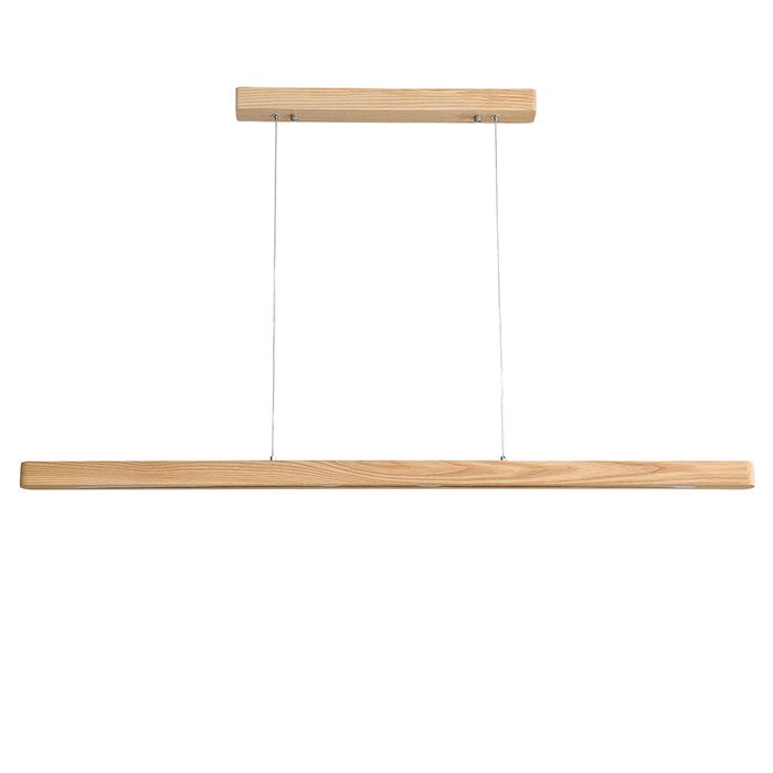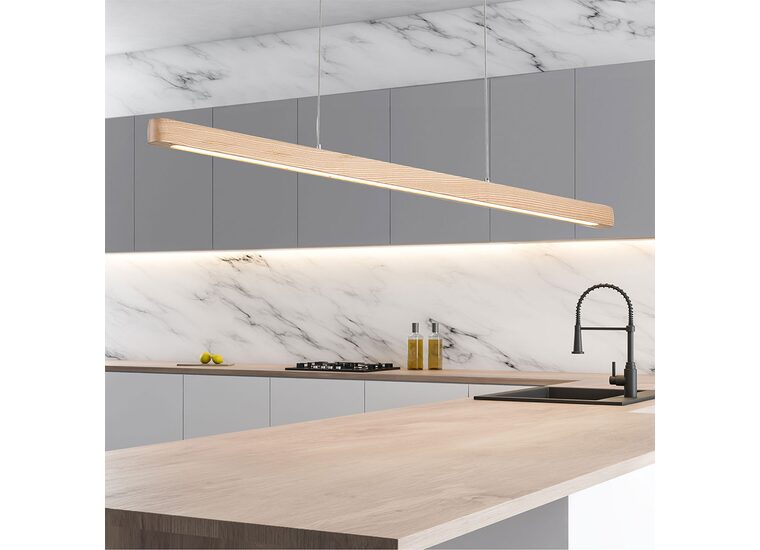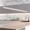 The ALPHA 150cm linear LED timber pendant in hand finished ash wood.