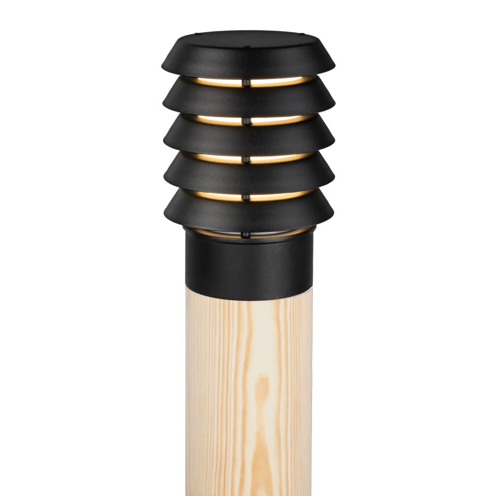 Crafted from impregnated wood with a sleek black finish, it offers a sophisticated look while delivering powerful 8.5W LED illumination.