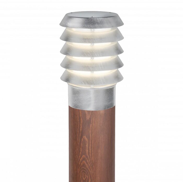 Brighten your outdoor area with the Alta Painted Wood Bollard Light 9W in Galvanized Steel.