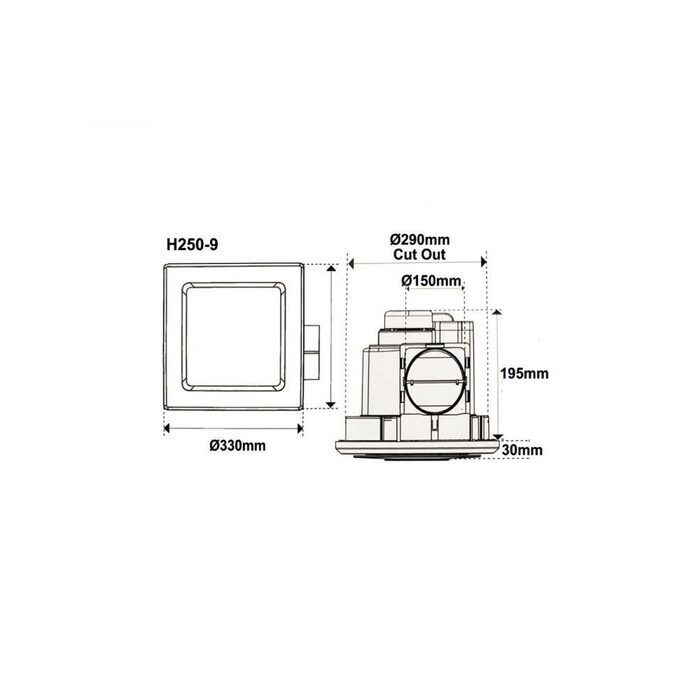 - Duct Outlet: 150mm
