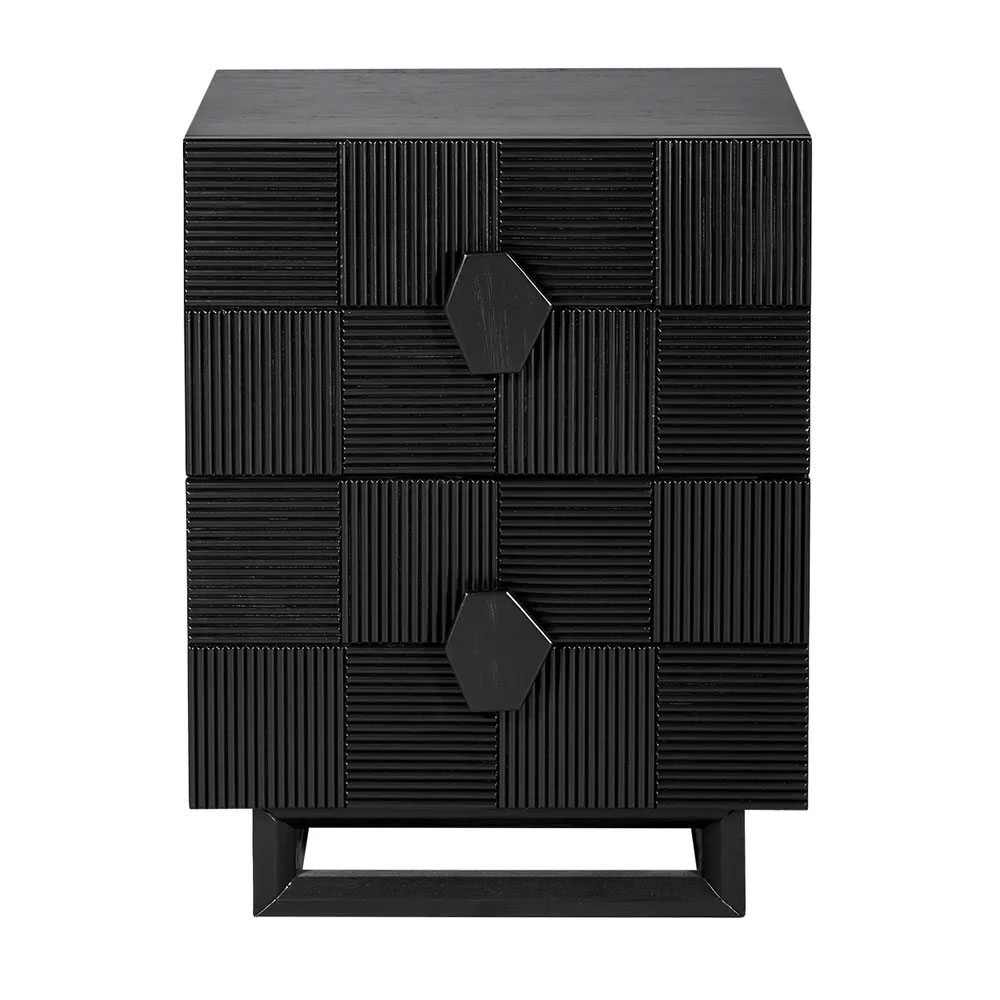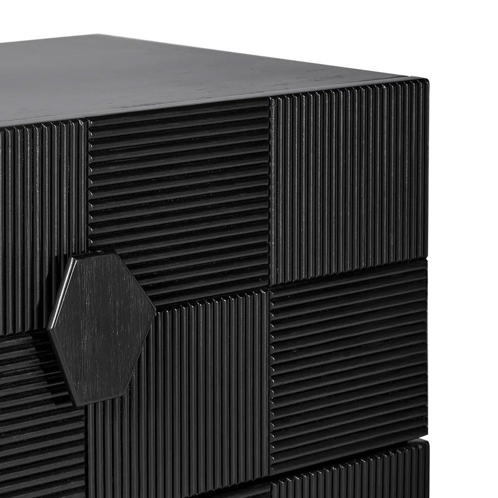Part of CAFE LIGHTING & LIVING's premium timber range, each table showcases a sleek geometric pattern and hexagonal handles, adding elegance and functionality to any Australian interior.