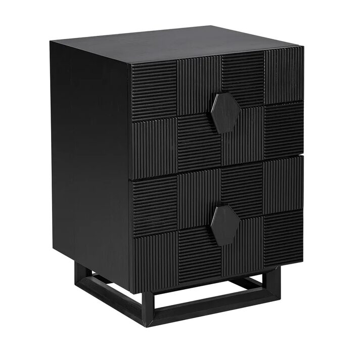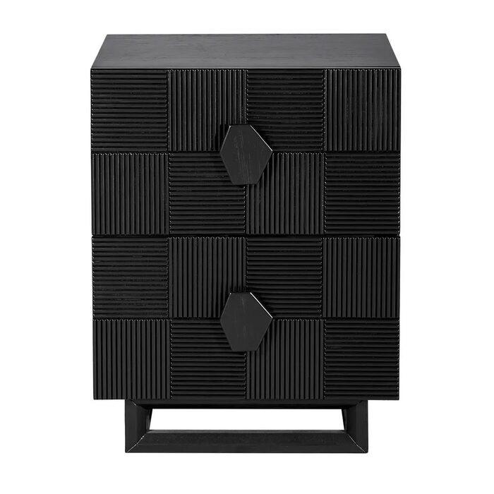 Complete your bedroom décor with these stylish timber bedside tables, available in two sizes and four sophisticated finishes: white, natural and black, black, and antique gold.