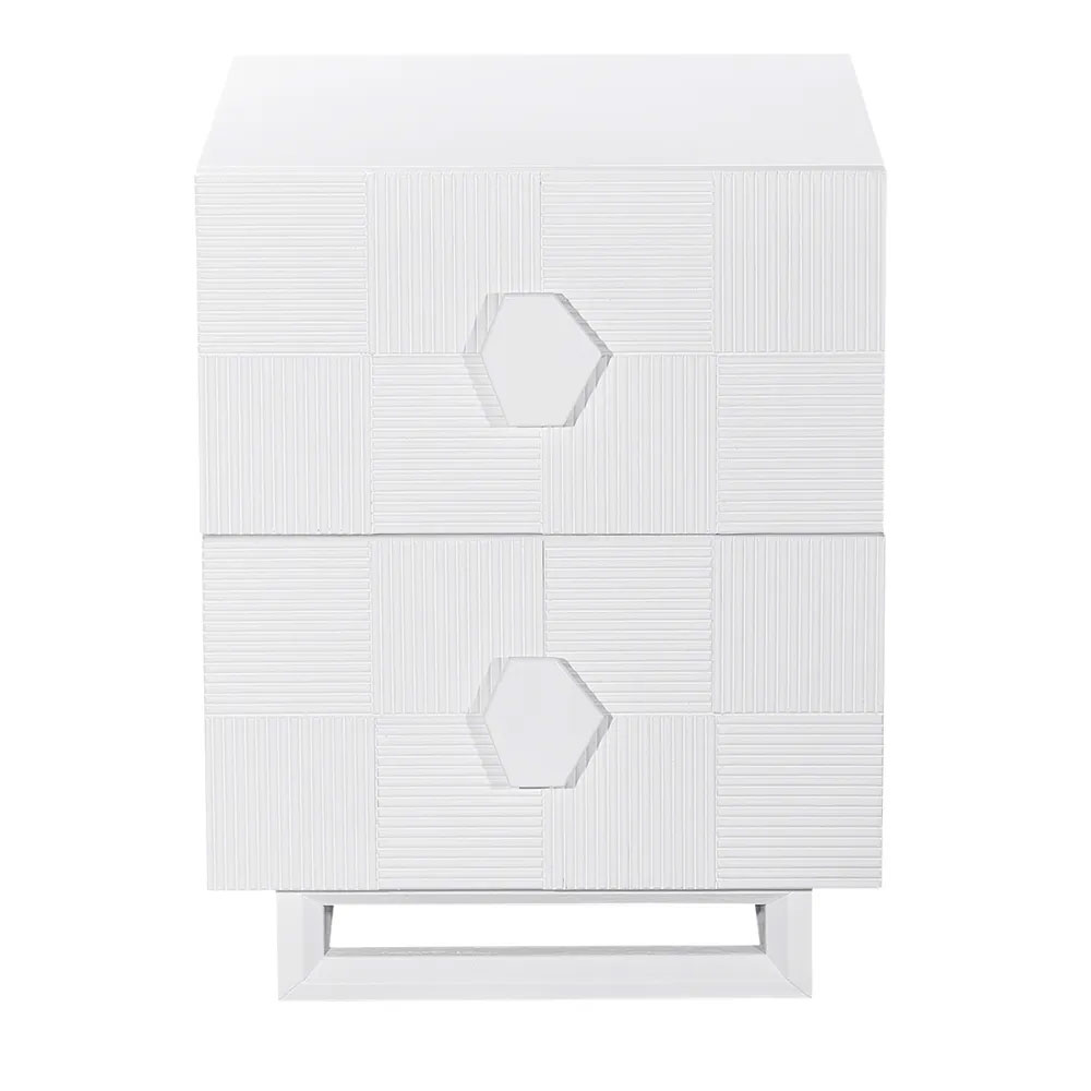 Complete your bedroom décor with these stylish timber bedside tables, available in two sizes and four sophisticated finishes: white, natural and black, black, and antique gold.