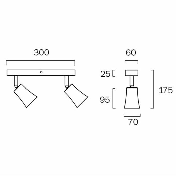 The rotatable spot heads create focused pools of light and the fixture is perfect for rooms with low and mid-height ceilings.