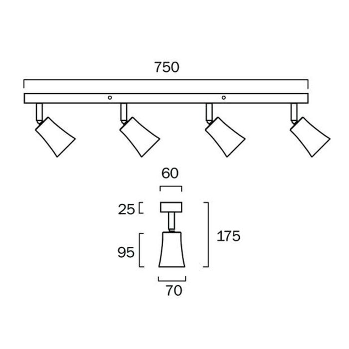 The rotatable spot heads create focused pools of light and the fixture is perfect for rooms with low and mid-height ceilings.