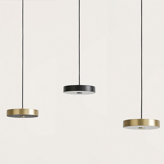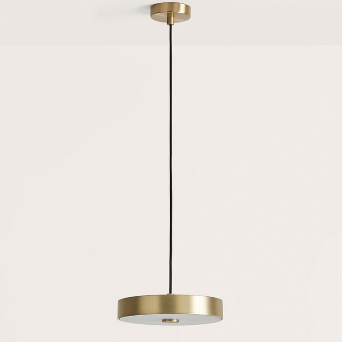 Ambor Pendant Lamp designed by Pepe Fornas for Aromas Del Campo is a classic indoor light fixture that features a round steel lampshade with an opal acrylic diffuser that projects light evenly.