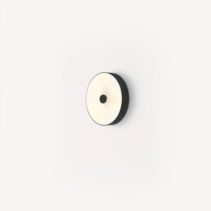 Part of the Ambor collection, this round wall light boasts a matte black steel structure enhanced by a coordinating decorative element at the centre of its diffuser. Its versatile design allows for both wall and ceiling placement, adapting to your decor vision with ease.