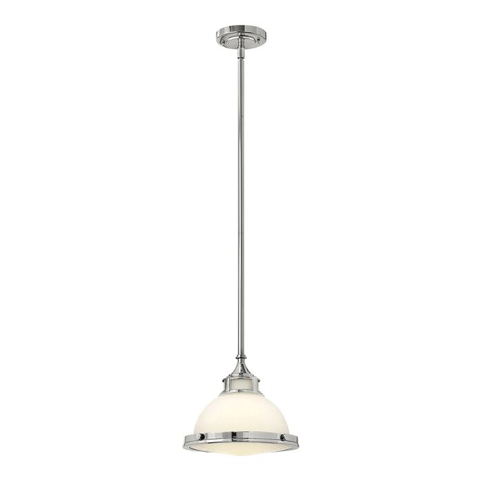Amelia’s classic pendant design reinvents vintage details with a cast glass fitter, cast metal trim ring and prominent hinges and clasps.