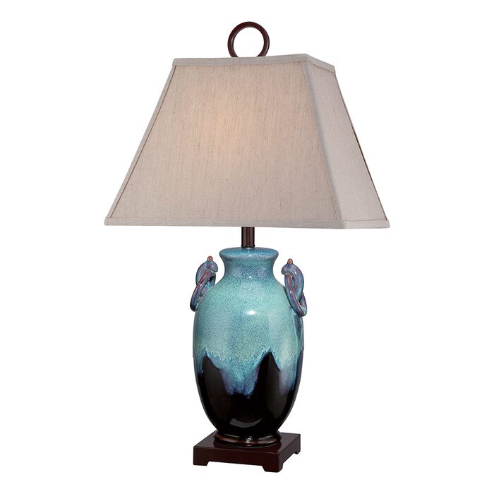 Ceramic turquoise and brown amphora table lamp, including Slubbed Sand linen softback shade.