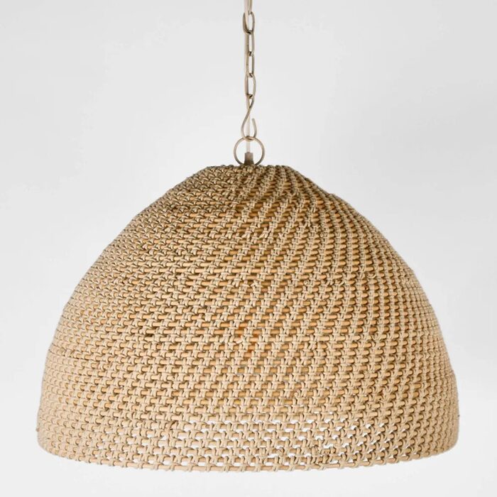Andora woven weave pendant light is a unique and stylish lighting fixture that features a distinctive design reminiscent of traditional weaving techniques. It is typically crafted using natural bleach rattan rope