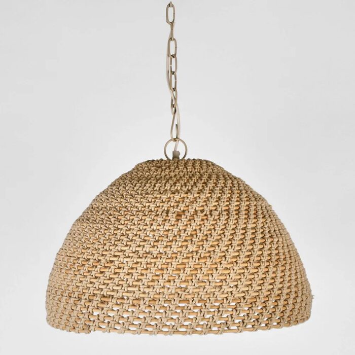 Andora woven weave pendant light is a unique and stylish lighting fixture that features a distinctive design reminiscent of traditional weaving techniques. It is typically crafted using natural bleach rattan rope