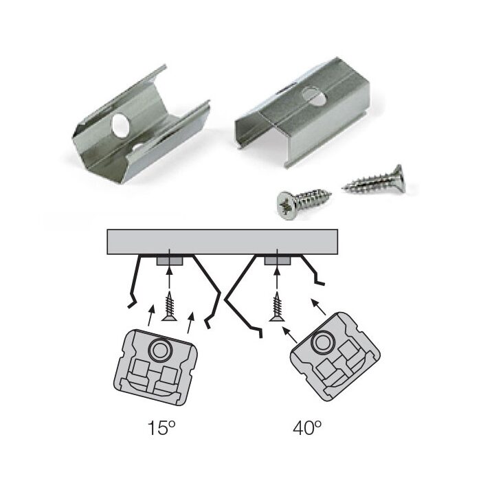 - Mounts DUAL series striplights on a 15° or 40° angle