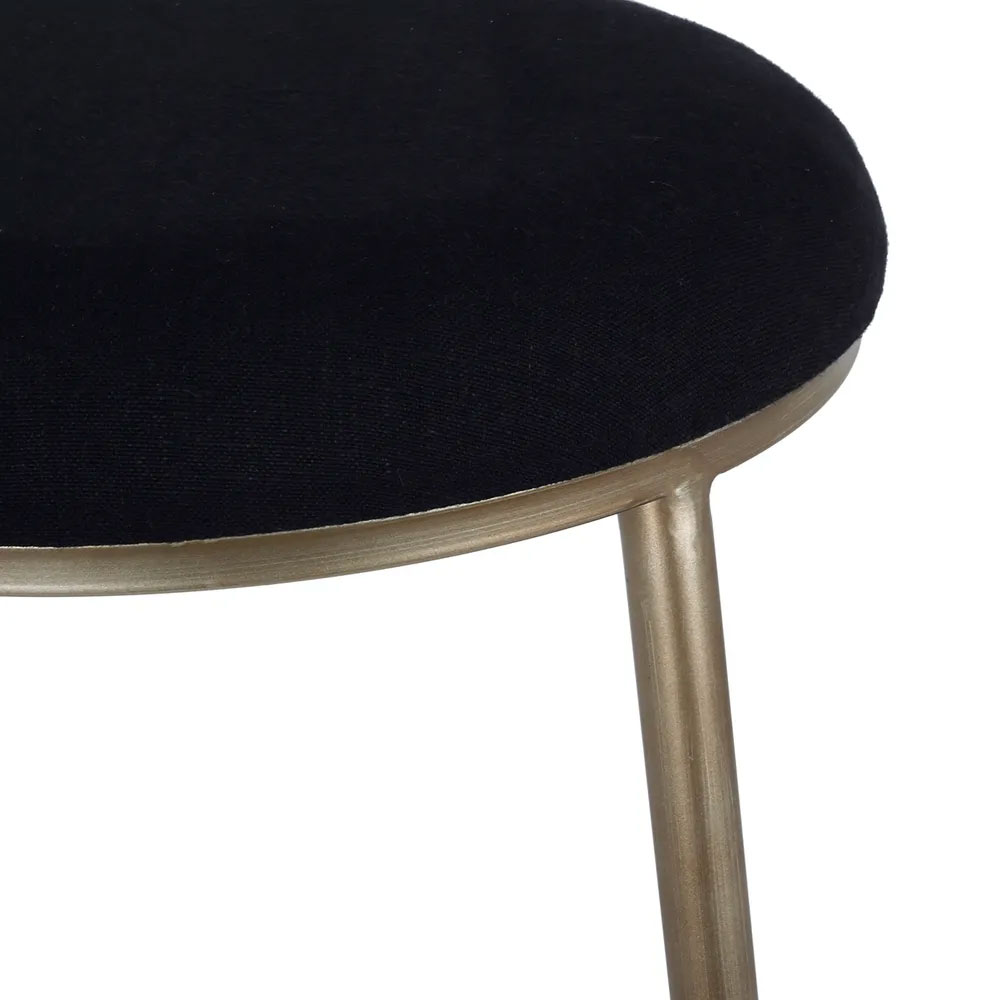 The rich black linen mix upholstery is soft and durable, complementing the golden metallic base for a timeless monochrome look.