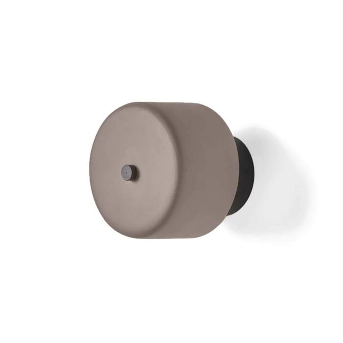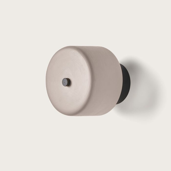 Aora Wall Light designed by Ac Studio for Aromas del Campo features a smoothly contoured cylindrical ceramic shade with contrasting metal accents.