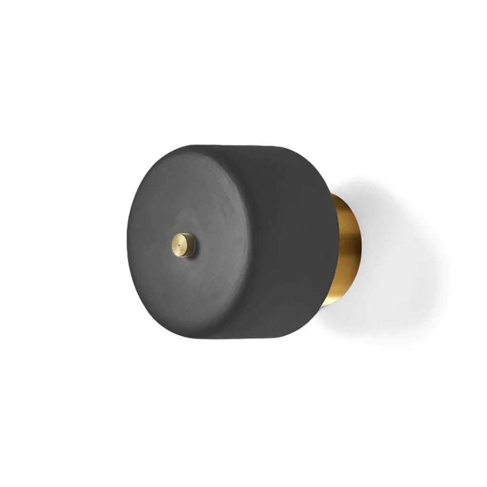 Aora Wall Light designed by Ac Studio for Aromas del Campo features a smoothly contoured cylindrical ceramic shade with contrasting metal accents.