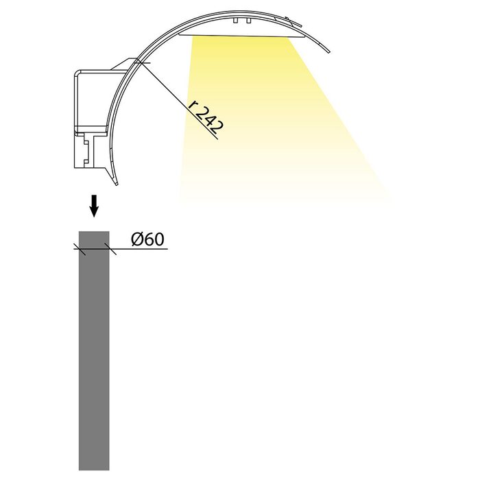 - Head can be pole mounted or wall mounted with a 60mmØ fitter - purchased separately