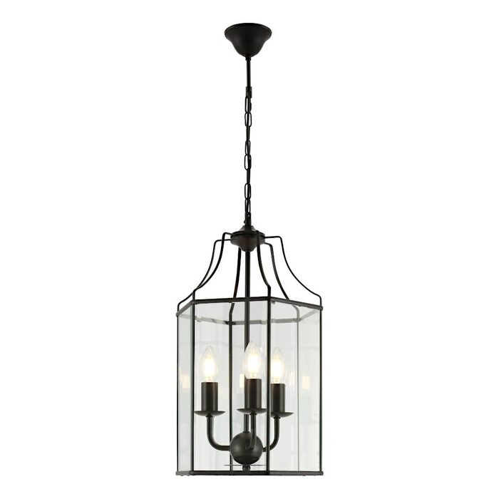 Clear glass panels are installed in the Black frames, surrounding the light sources, refracting and distributing light from the bulbs inside.