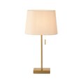 With its stylish blend of a fabric lampshade and warm brass metal stand, this lamp perfectly combines modern and traditional design, adding a touch of mid-century charm to your home or office décor.