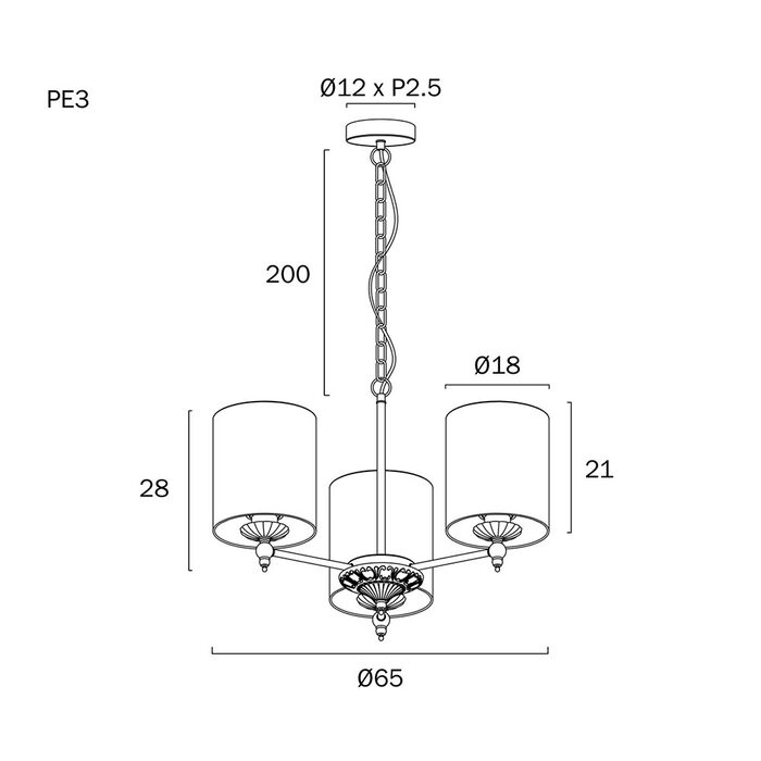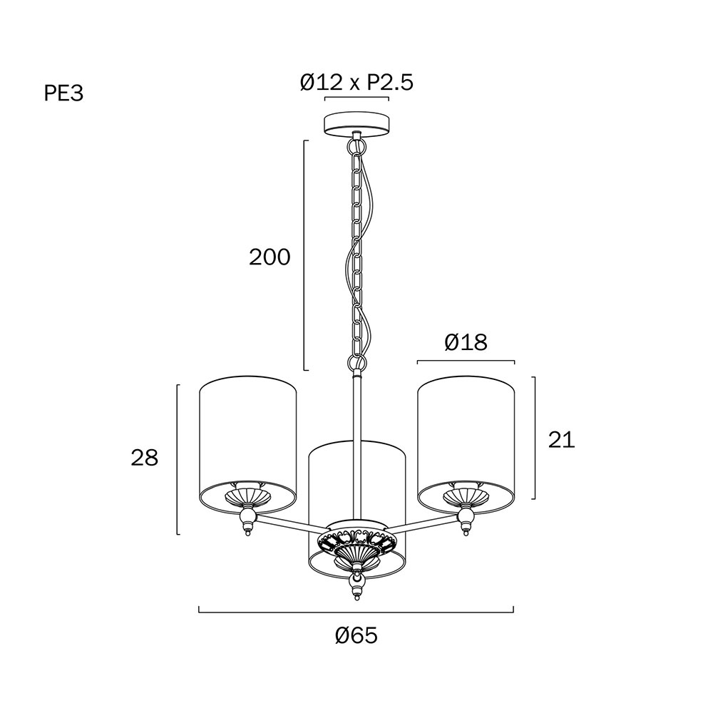 - Lamp Base: 3 x E27 / ES Edison Screw