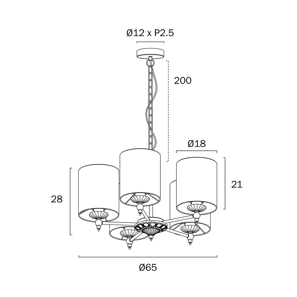 - Lamp Base: 5 x E27 / ES Edison Screw