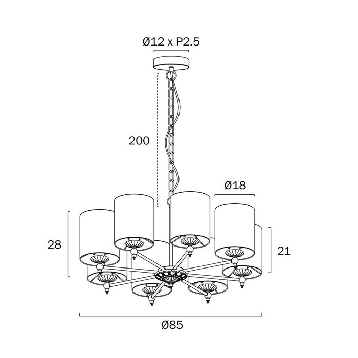 - Lamp Base: 8 x E27 / ES Edison Screw