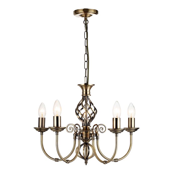 Aria decorative 3 light pendant. Ideal for traditional or cottage style interiors. Designed with traditional antique brass metalwork and detailing.