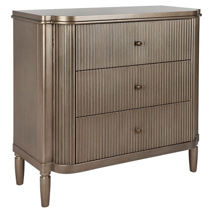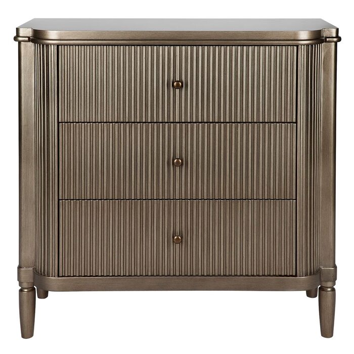 Sporting the same luscious curves as its companions, the Arielle three drawer chest exudes understated elegance with a contemporary twist on a classic silhouette, paying homage to art deco design.
