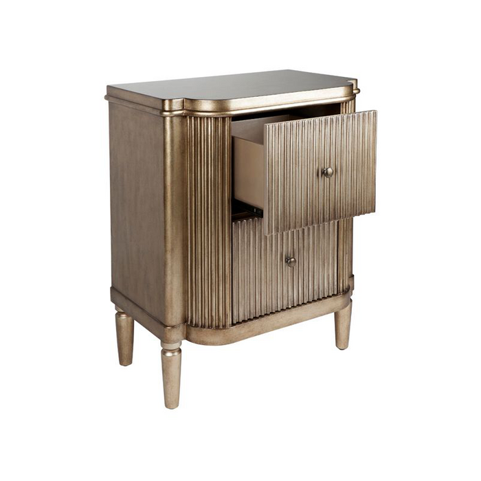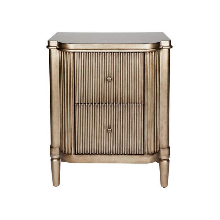 With a nod to Art Deco, the Arielle bedside table in an elegant hand painted antique gold exudes understated elegance with a contemporary twist on a classic silhouette.