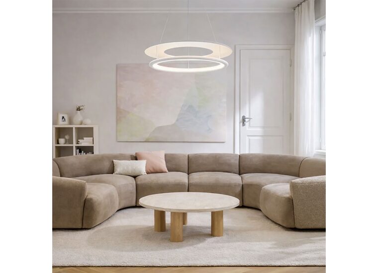 The Ariva pendant collection offers a sleek, contemporary aesthetic available in black or white colourways, each finished in a refined sand‑textured coating.